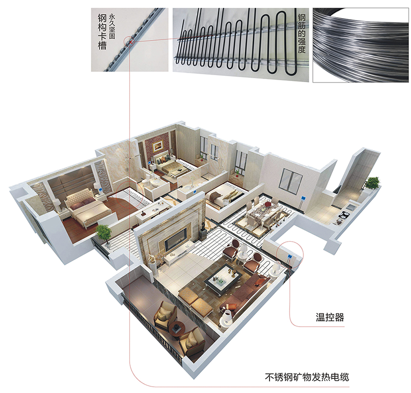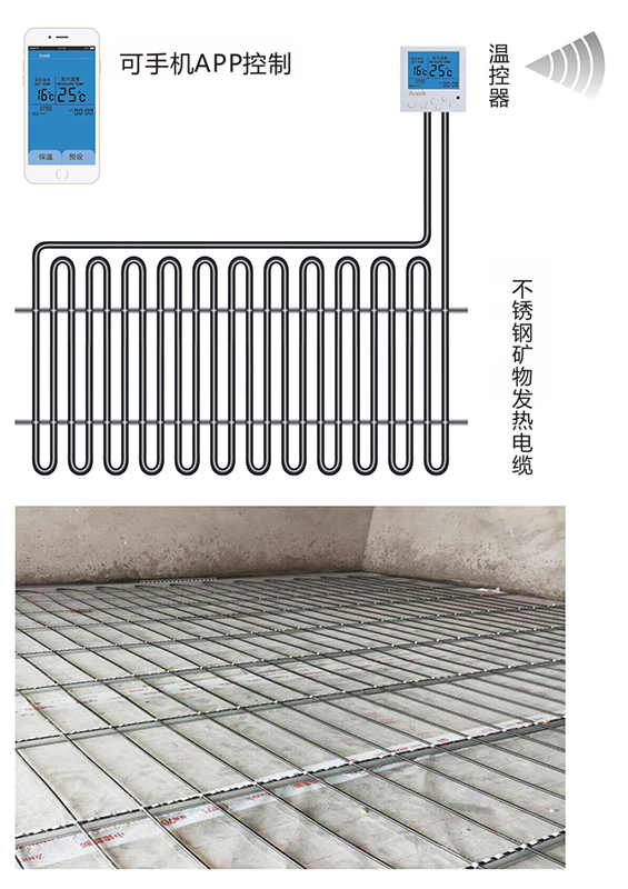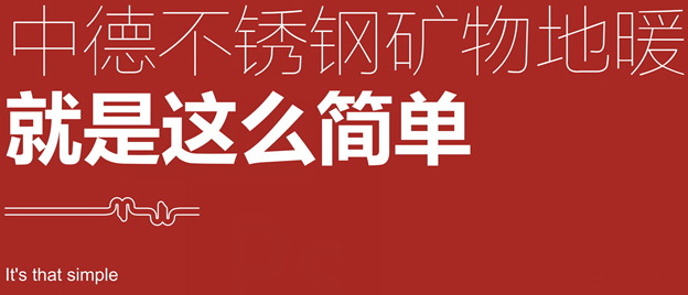 認識地暖 中德不銹鋼礦物電地暖,保用70年,無后期維護,與建筑同壽命,發(fā)熱快,零輻射,無功率衰減可發(fā)出有益紅外線,改善人體微循環(huán)。節(jié)能省電,實際安裝面積, 24小時/m2 ,電耗低至0.4度。 系統(tǒng)安裝 安裝簡便, 電纜線+溫控器 采暖效果 不銹鋼礦物地暖發(fā)熱溫度均衡平均最高溫度在30度左右傳熱快,隨開隨關,節(jié)能方便 生產(chǎn)技術 德國技術采用全自動生產(chǎn)線生產(chǎn)內(nèi)部無接口它的使用壽命在70年以.上 中德不銹鋼礦物地暖 VS 傳統(tǒng)供暖 水暖 制暖效果好,傳熱速度慢,能耗高容易產(chǎn)生水垢后期維護費用多水管易破裂有安全隱患. PVC發(fā)熱地暖、碳纖維地暖 PVC護套,不抗拉、易損壞安全性能一般,使用壽命效短PVC安裝成本低 電熱膜地暖 電熱膜發(fā)熱速度快PVC護套,內(nèi)部接口多有安全隱患,功率衰減嚴重 石墨烯地暖 石墨烯地暖價格較低壽命短,適用于短期采暖功率衰減嚴重 德國技術 保用70年電纜自動恒溫可智能APP遠程控制